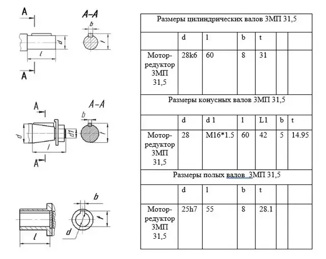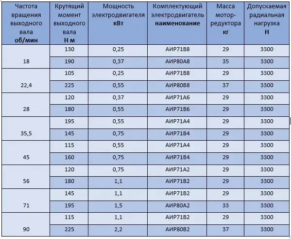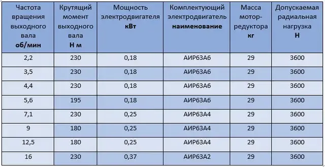 Характеристика мотор-редукторів планетарних 3МП (4МП) 31,5 (одноступінчатий)