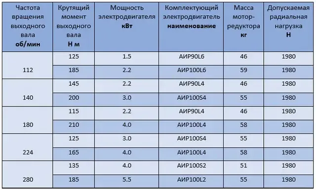 | Оберти на виході | 112, 140, 180, 224, 280 |