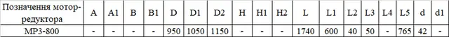 Технічна характеристика мотор-редукторів МР3-800