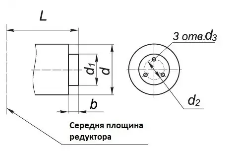 | Редуктор | b | d | d1 | d2 | d3 | L | l | l1 | Зацеплення | |