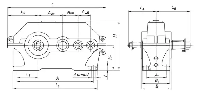 Аw т | Аw п | Аw б | В | B1 | Н | H1 | h | L | L1 | L2 | L3 | L4 | L5 | d |