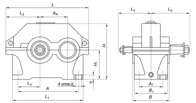 Аw | А | А1 | В | B1 | Н | H1 | h | L | L1 | L2 | L3 | L4 | L5 | d |