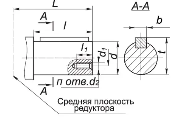 Приєднувальні розміри конічних валів редукторів Ц2.