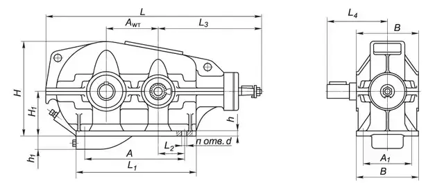 Аw Т | А | А1 | В | Н | H1 | h | h1 | L | L1 | L2 | L3 | L4 | d | n |