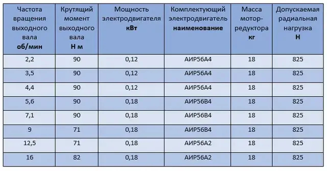 | Обороты на выходе | 18, 22.4, 28, 35.5, 45, 56, 71, 90 |
