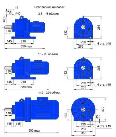 | Обороты на выходе | 2.2, 3.5, 4.4, 5.6, 7.1, 9, 12.5, 16 |