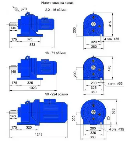 | Обороты на выходе | 112, 140, 180, 224, 280 |