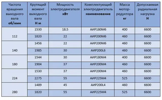 | Обороты на выходе | 112, 140, 180, 224, 280 |